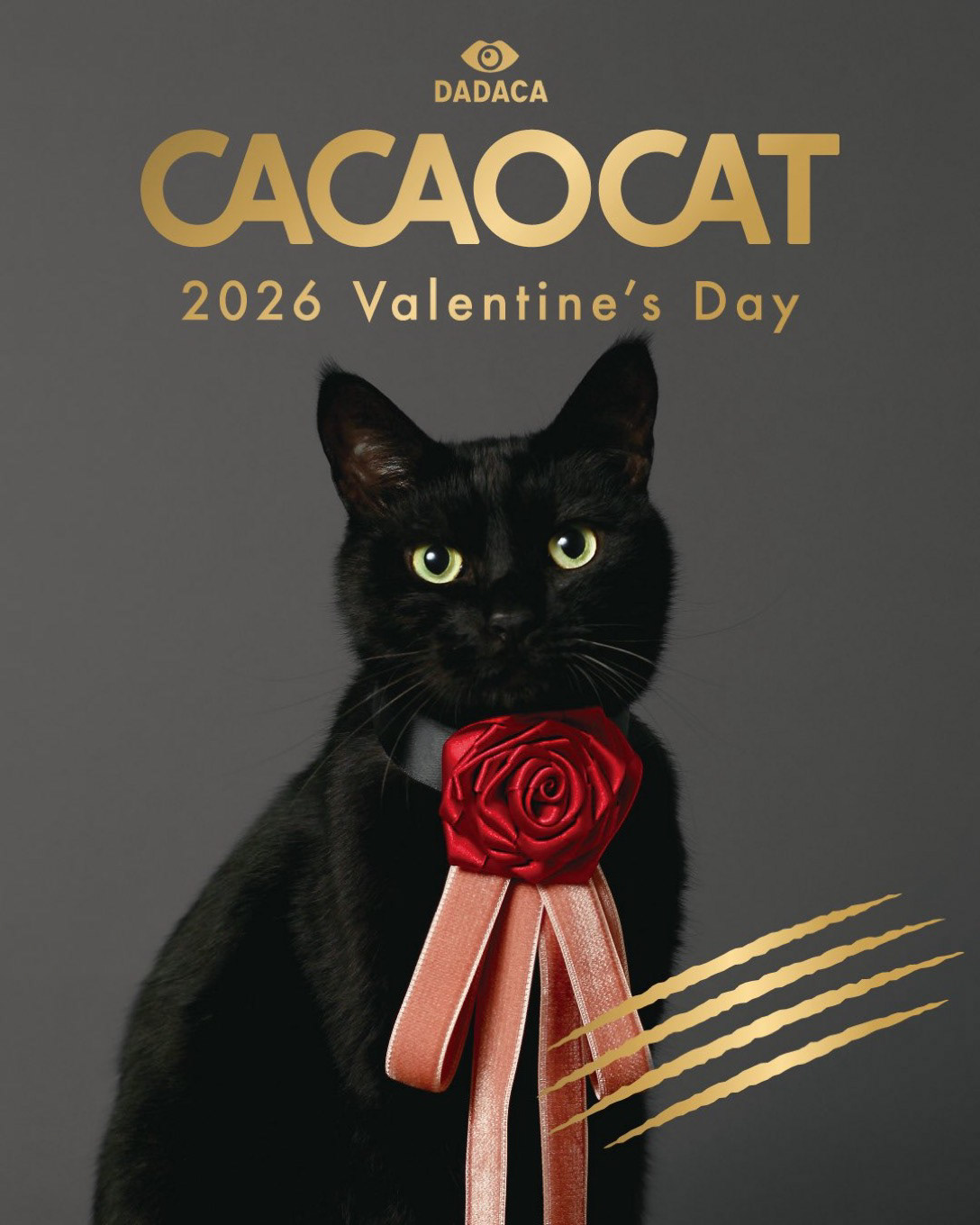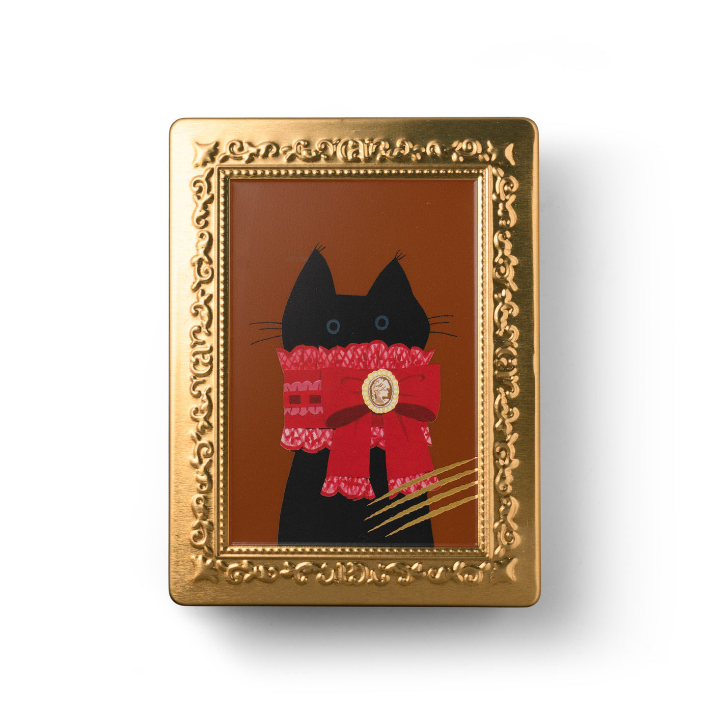 『猫の舌』を意味する薄い生地のサクサククッキー、ココアのラングドシャに、猫型のCACAOCATチョコレートをサンド。